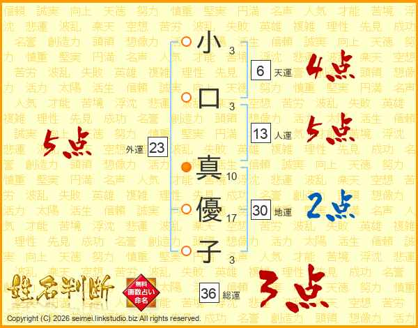 小口真優子さんの人運は13画の5点!