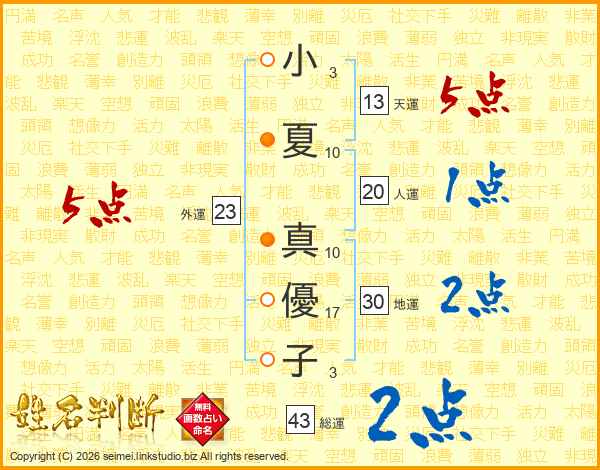 小夏真優子さんの天運は13画の5点!