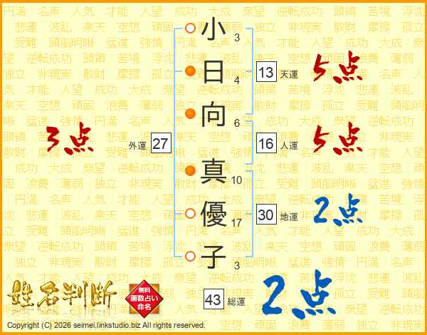 小日向真優子さんの外運は27画の3点!