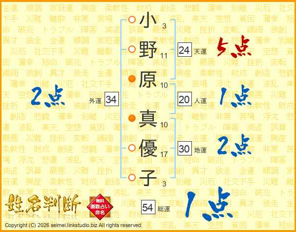 小野原真優子さんの総運は54画の1点!