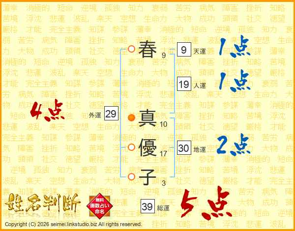 春真優子さんの総運は39画の5点!