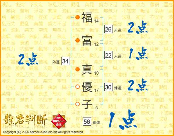 福富真優子さんの天運は26画の2点!