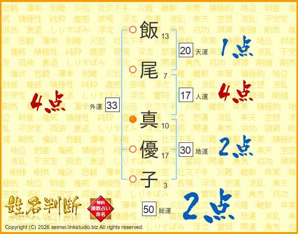 飯尾真優子さんの外運は33画の4点!