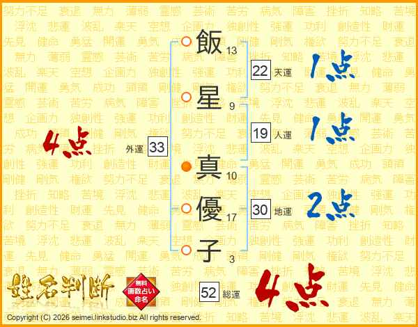 飯星真優子さんの総運は52画の4点!
