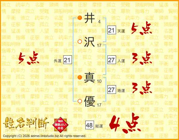 井(4画)沢(17画) 真(10画)優(17画)