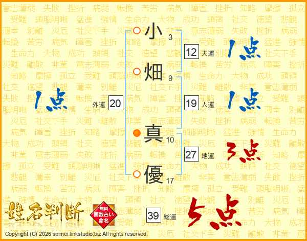 小畑真優さんの総運は39画の5点!