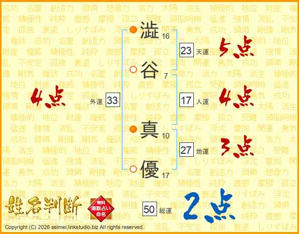 澁(16画)谷(7画) 真(10画)優(17画)
