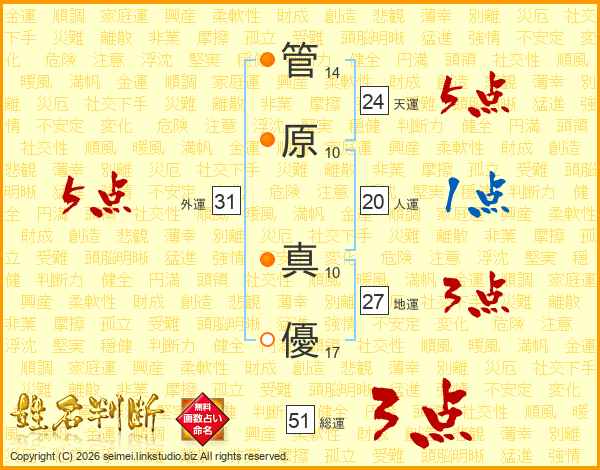 管原真優さんの天運は24画の5点!