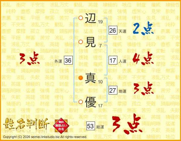 辺見真優さんの天運は26画の2点!