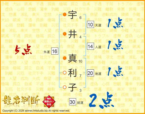 宇井真利子さんの外運は16画の5点!