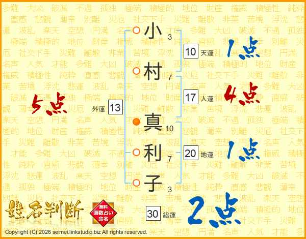 小村真利子さんの総運は30画の2点!