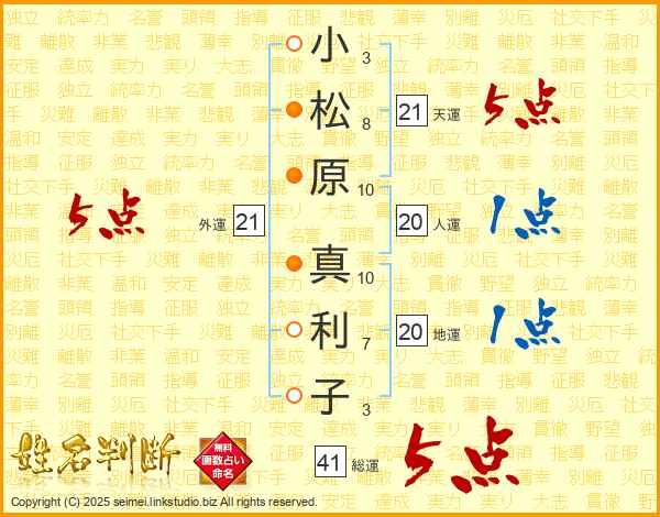 小(3画)松(8画)原(10画) 真(10画)利(7画)子(3画)