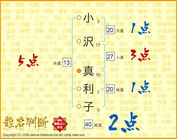 小沢真利子さんの総運は40画の2点!