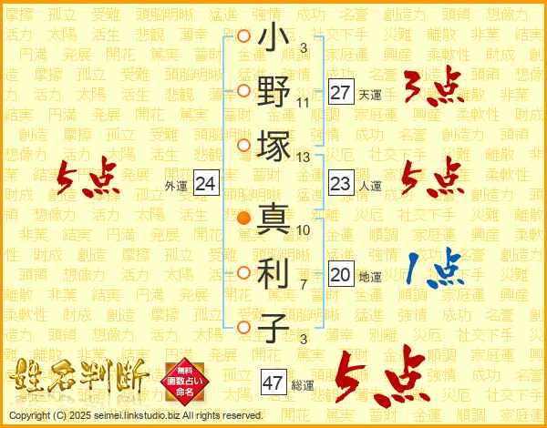 小野塚真利子さんの総運は47画の5点!