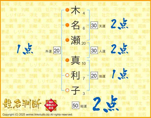 木名瀬真利子さんの天運は30画の2点!