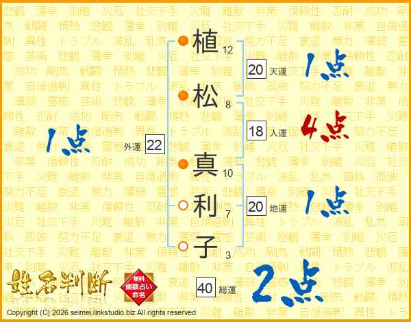植(12画)松(8画) 真(10画)利(7画)子(3画)