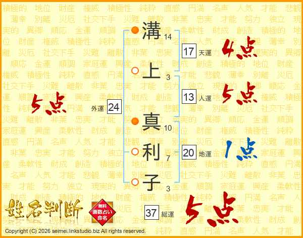溝上真利子さんの総運は37画の5点!