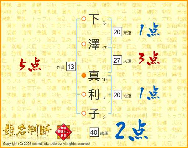 下澤真利子さんの総運は40画の2点!