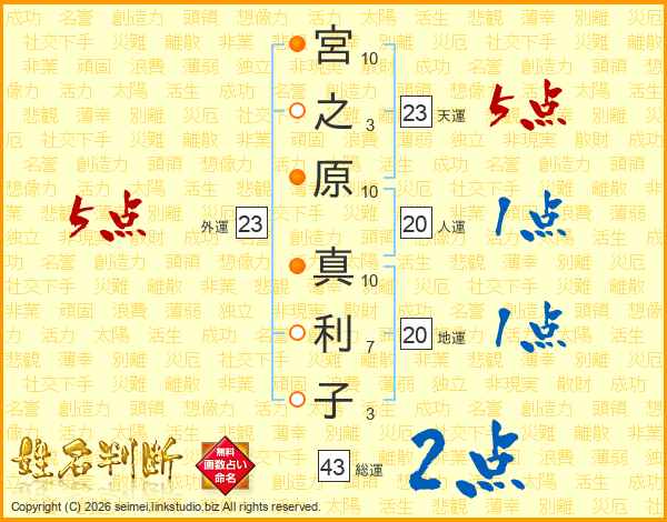 宮之原真利子さんの総運は43画の2点!