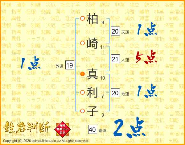 柏崎真利子さんの人運は21画の5点!