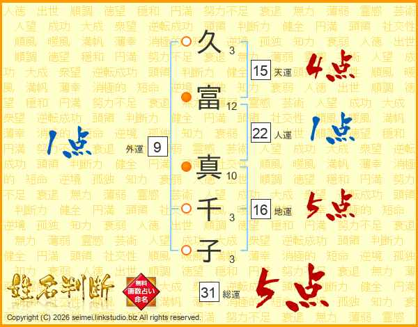 久富真千子さんの人運は22画の1点!
