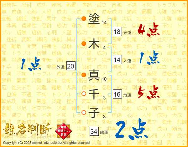 塗木真千子さんの総運は34画の2点!