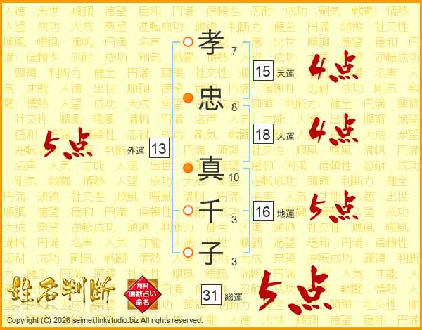 孝忠真千子さんの総運は31画の5点!