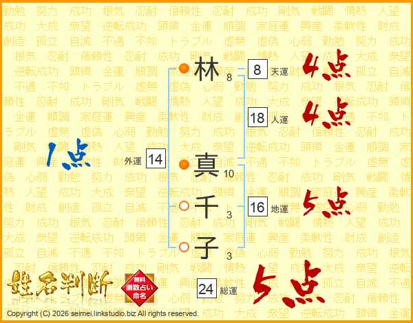 林真千子さんの外運は14画の1点!