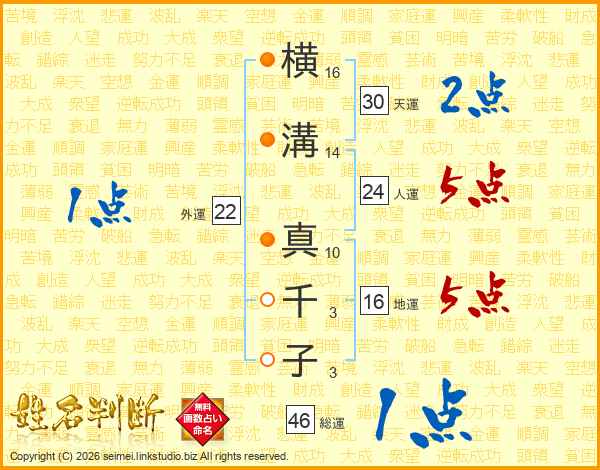 横溝真千子さんの天運は30画の2点!