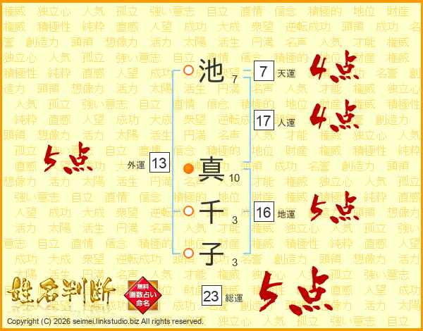 池真千子さんの総運は23画の5点!