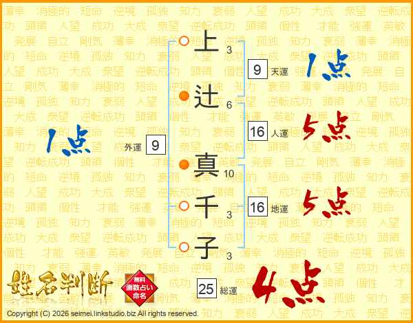 上辻真千子さんの総運は25画の4点!