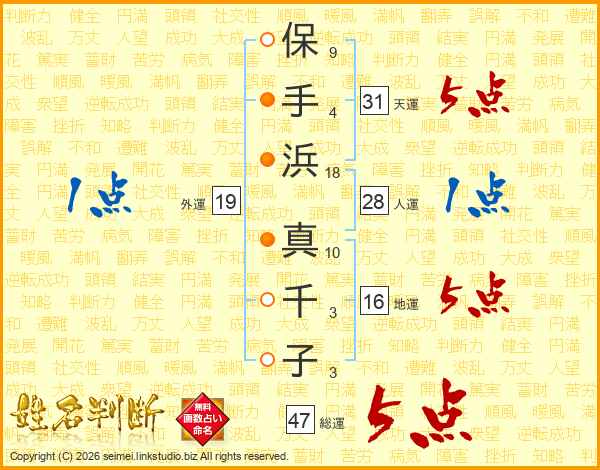 保手浜真千子さんの総運は47画の5点!