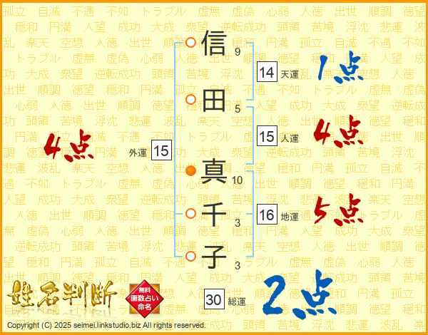 信田真千子さんの総運は30画の2点!