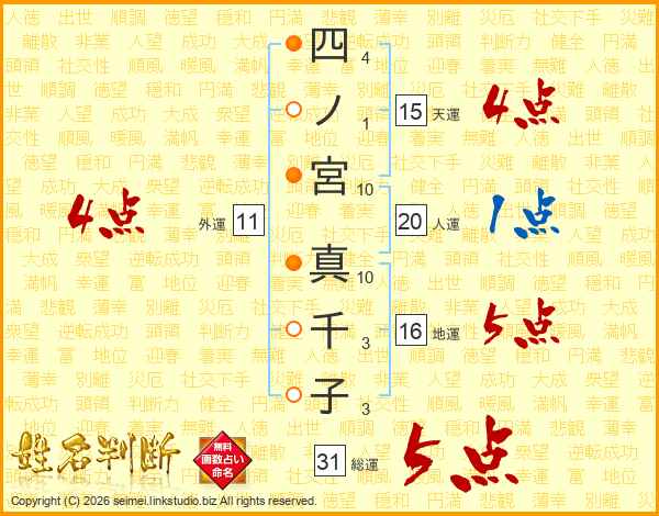 四ノ宮真千子さんの総運は31画の5点!