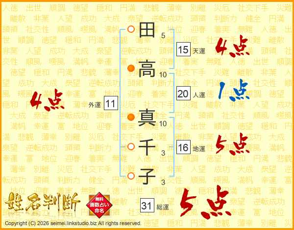田高真千子さんの天運は15画の4点!