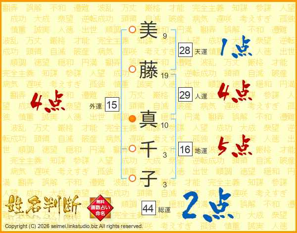 美藤真千子さんの総運は44画の2点!