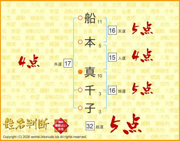 船本真千子さんの外運は17画の4点!