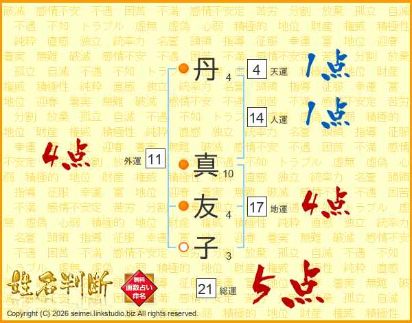 丹(4画) 真(10画)友(4画)子(3画)
