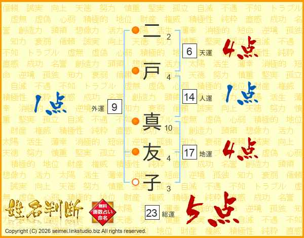 二(2画)戸(4画) 真(10画)友(4画)子(3画)