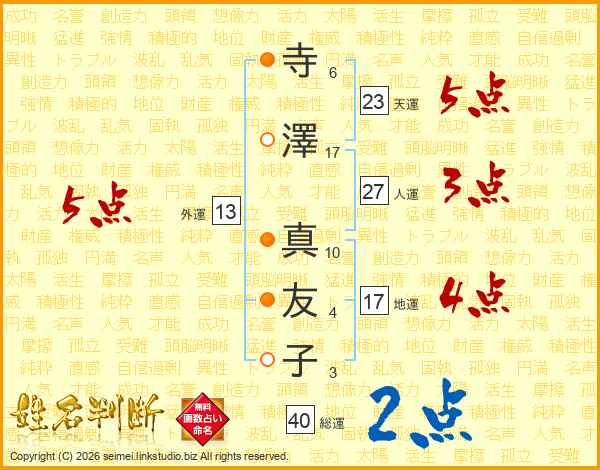 寺澤真友子さんの総運は40画の2点!