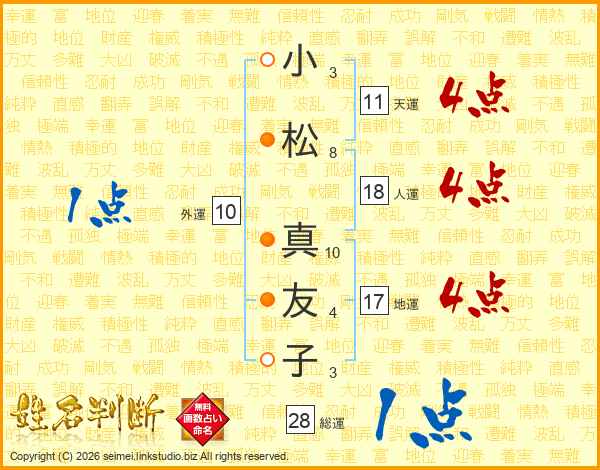 小(3画)松(8画) 真(10画)友(4画)子(3画)