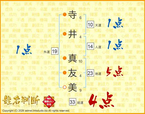 寺(6画)井(4画) 真(10画)友(4画)美(9画)