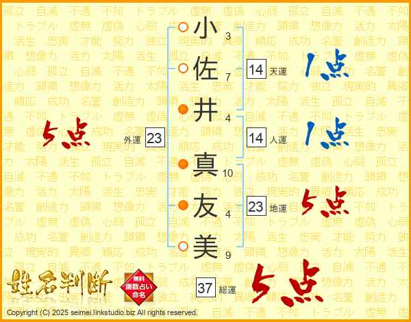 小(3画)佐(7画)井(4画) 真(10画)友(4画)美(9画)
