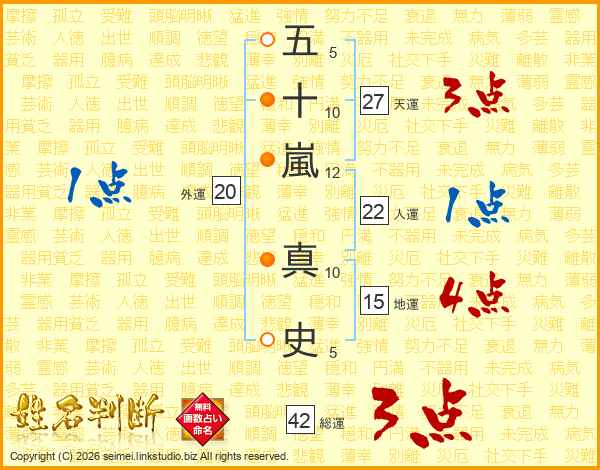 五十嵐真史さんの天運は27画の3点!