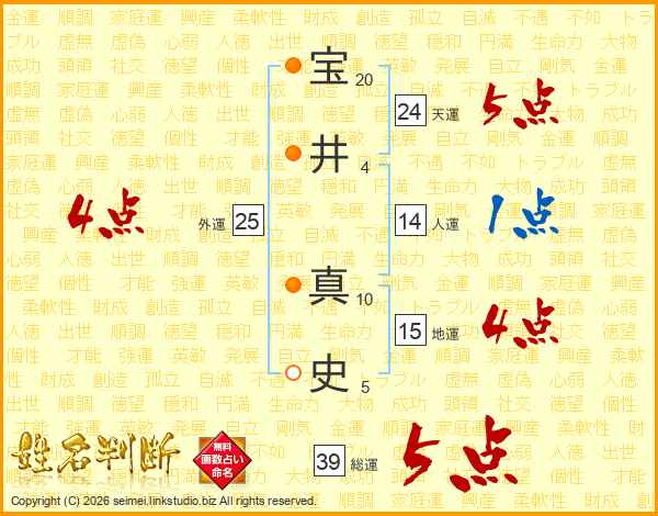 宝井真史さんの総運は39画の5点!