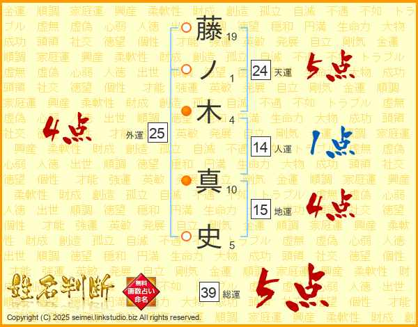藤ノ木真史さんの総運は39画の5点!