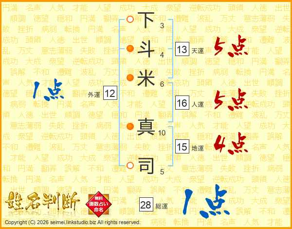 下(3画)斗(4画)米(6画) 真(10画)司(5画)