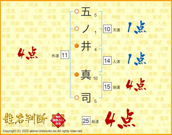 五ノ井真司さんの総運は25画の4点!