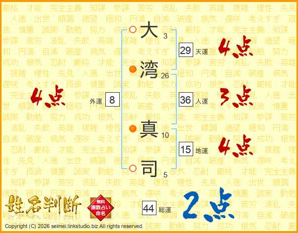 大湾真司さんの総運は44画の2点!