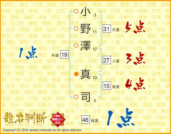 小野澤真司さんの天運は31画の5点!